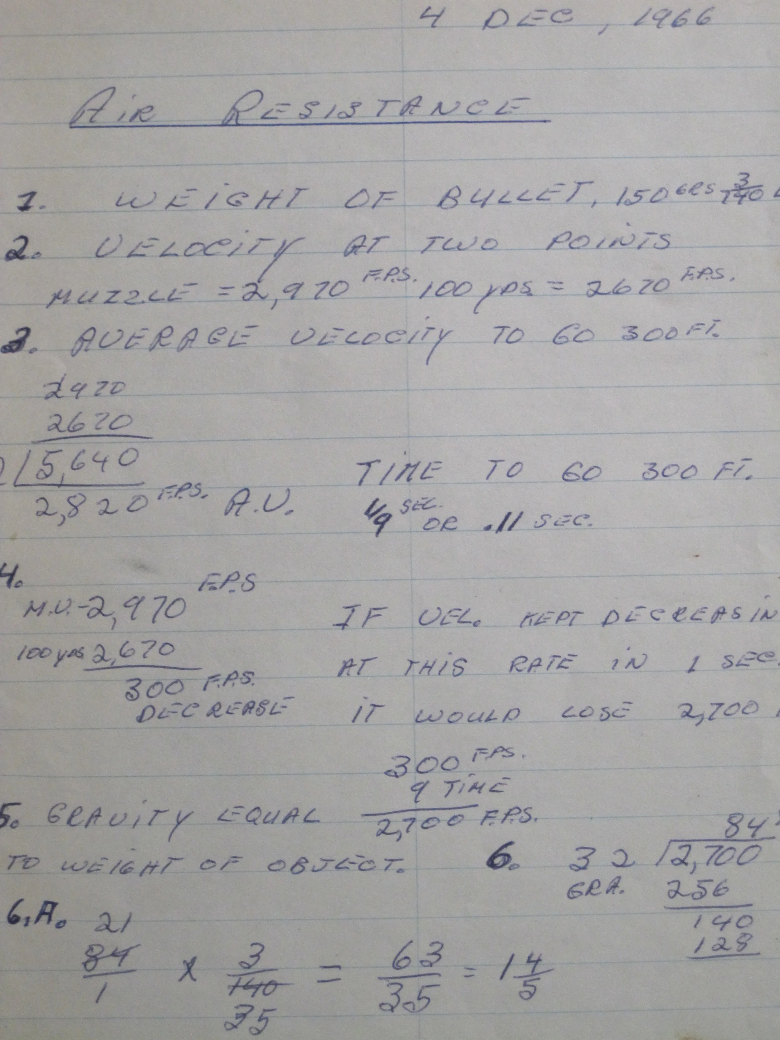 Confined to barracks December 4, 1966, the day after my first Article 15, I calculated how air resistance affects projectiles